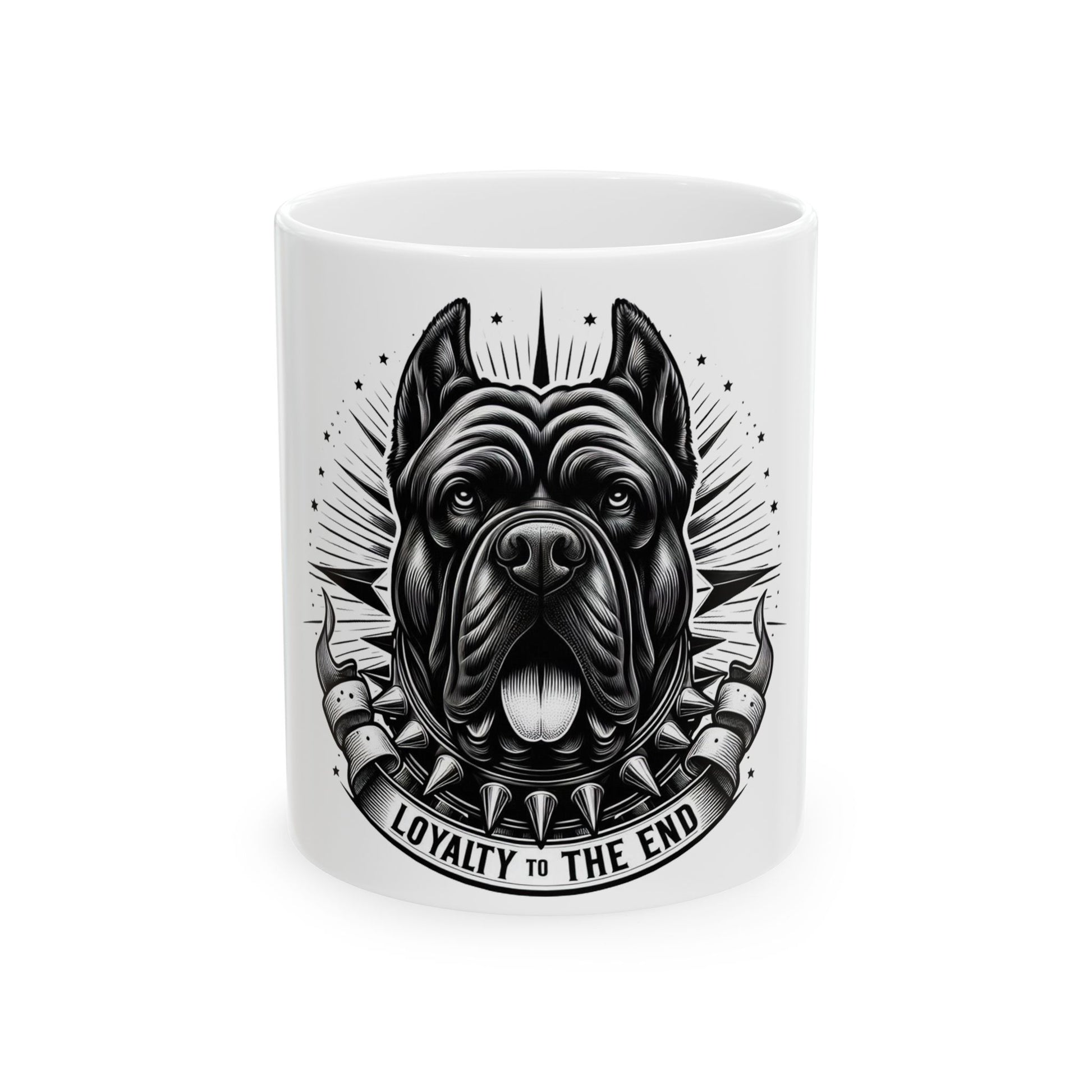 Show your love for dogs with the Loyalty to the End Dog Lover Mug, a perfect ceramic coffee cup for pet lovers.