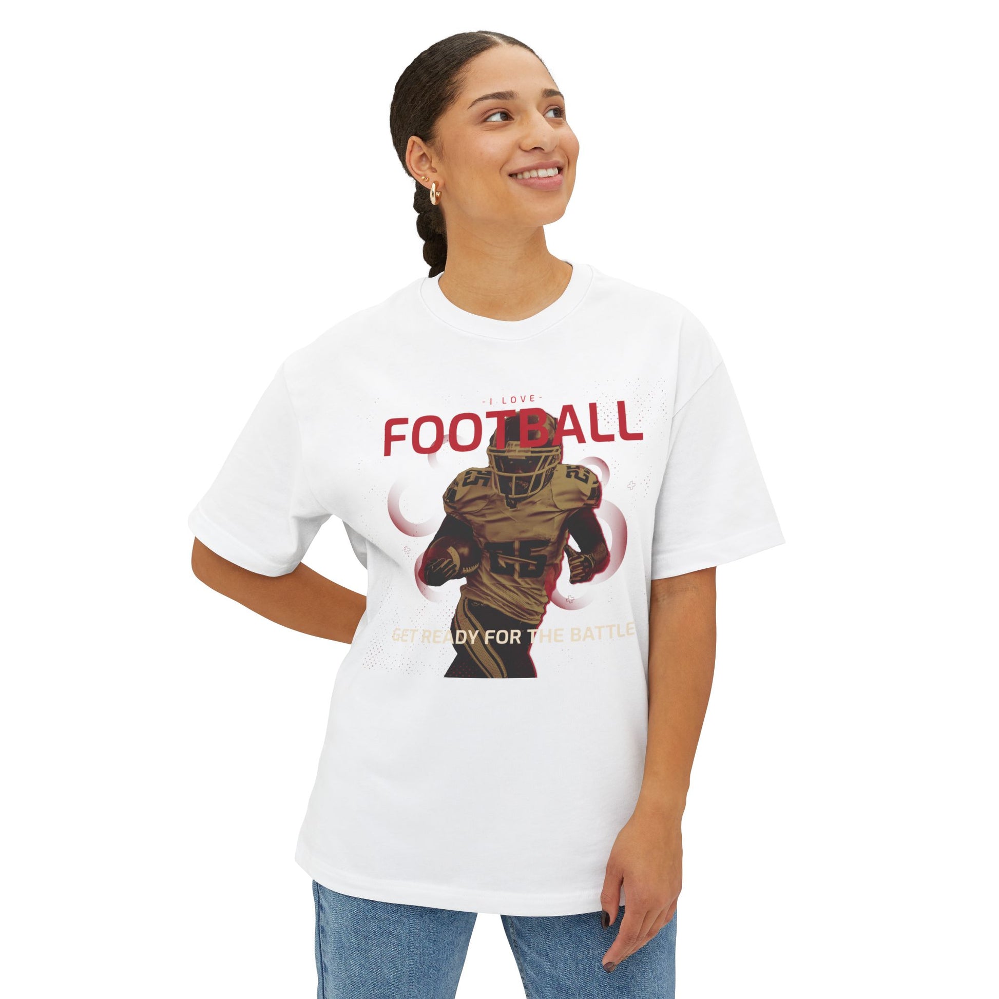 Featuring the bold "I Love Football" slogan, this comfy oversized tee is perfect for football fans ready for the battle.