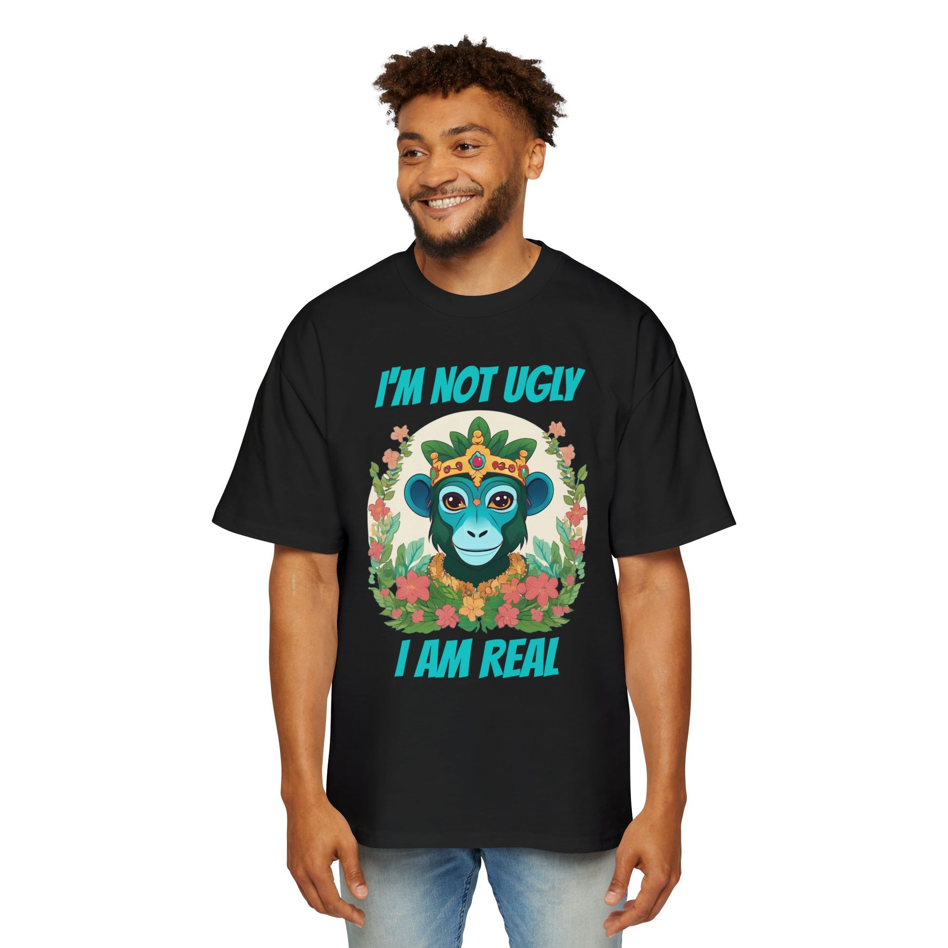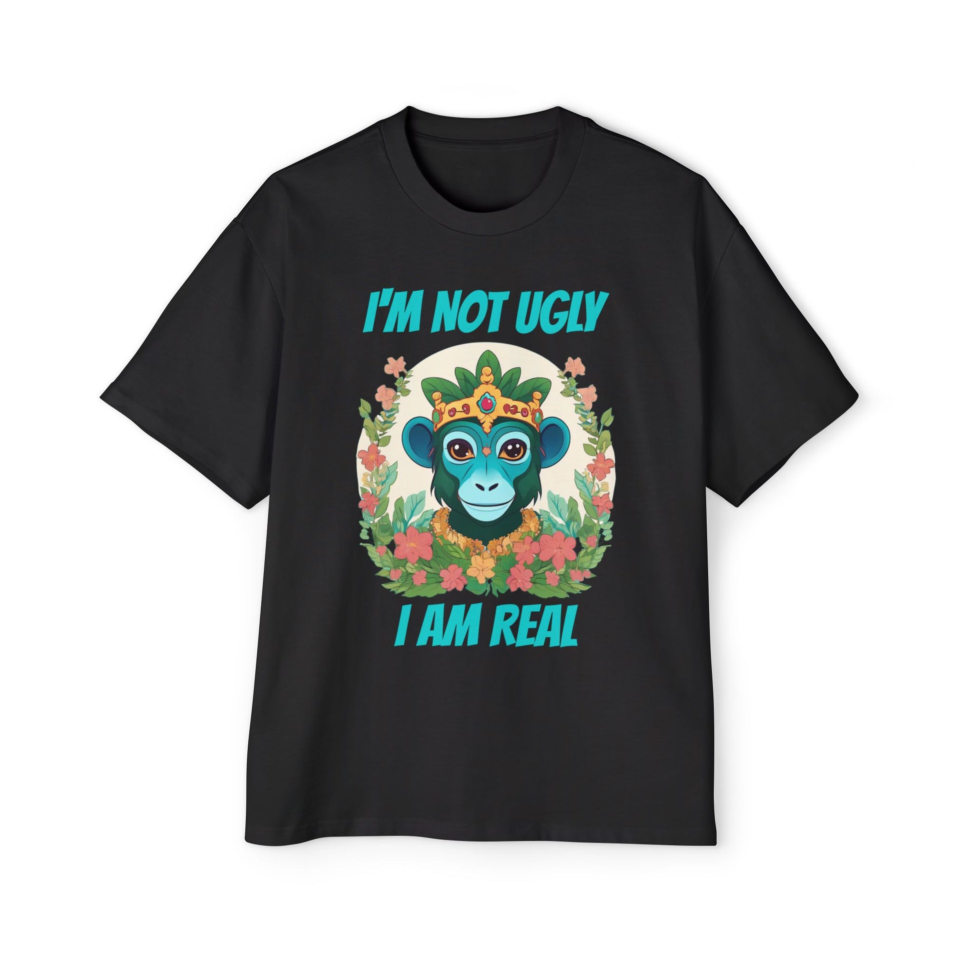 Make a bold statement with our Men's Oversized Tee featuring the popular "I'm Not Ugly, I Am Real" in an anime-inspired street style design.