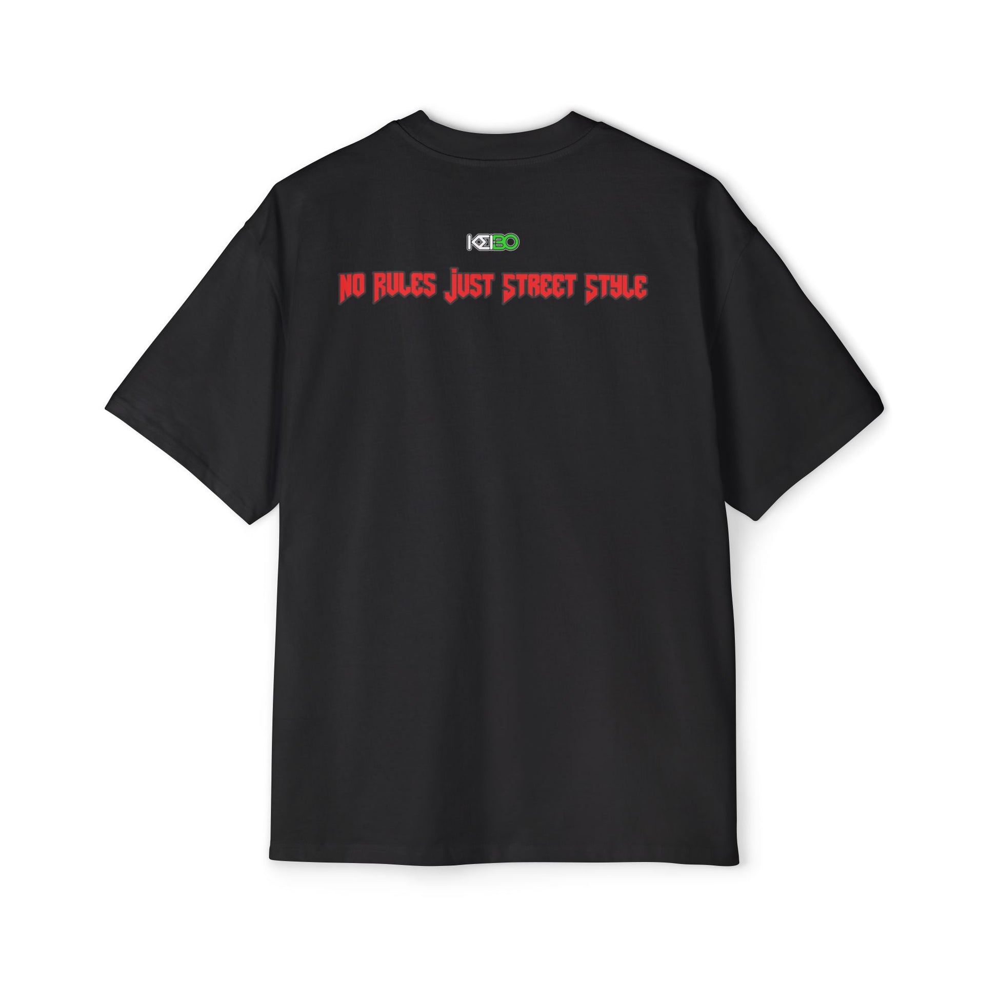 Show off your bold side with the Men's Oversized Tee KEIBO Brand, featuring the "No Rules Just Street Style" graphic for a rebellious look.