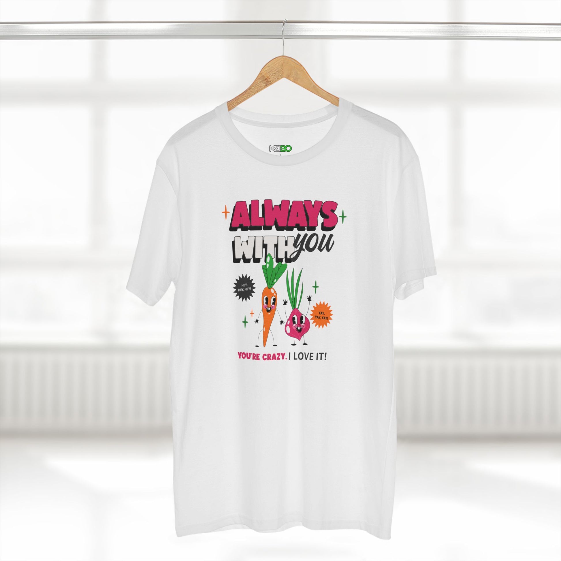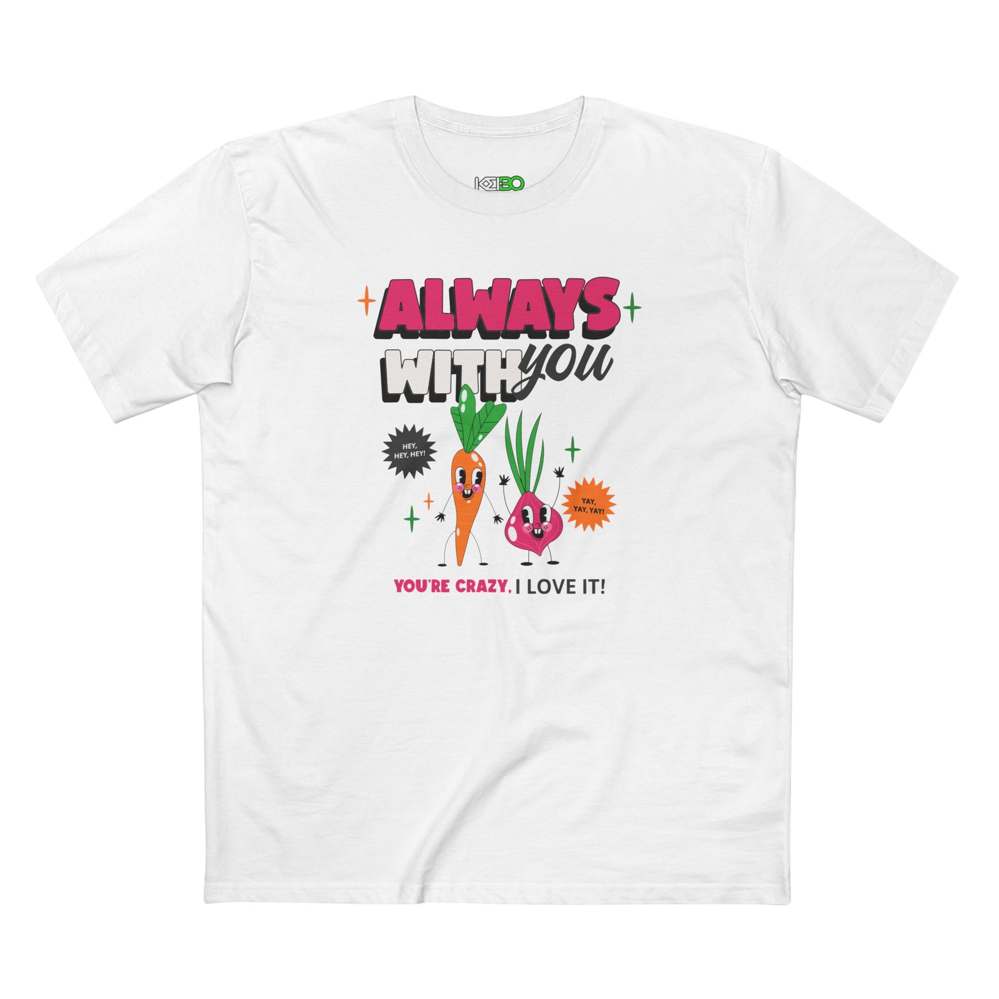 Upgrade your casual wardrobe with the Men's Staple T-shirt featuring a fun Vegetable Party graphic.
