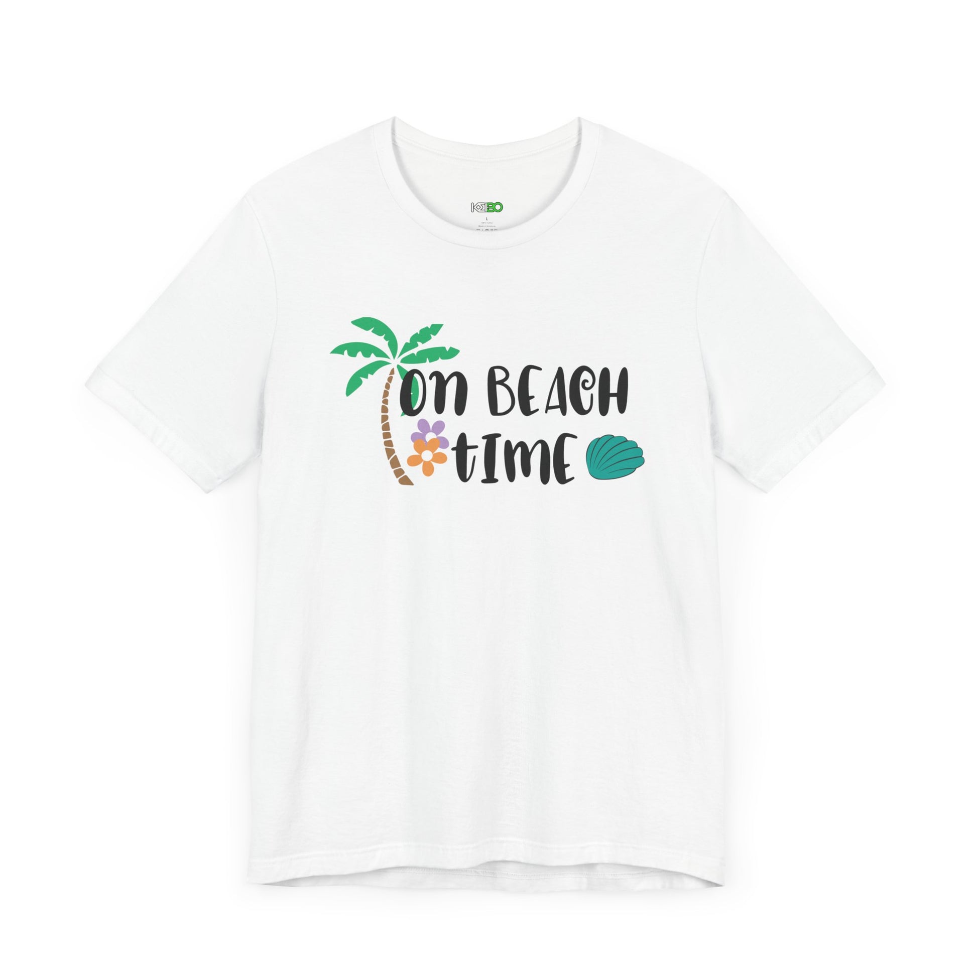 Get into the summer spirit with the On Beach Time Women's Tee, a stylish graphic t-shirt perfect for beach days and sunny getaways.