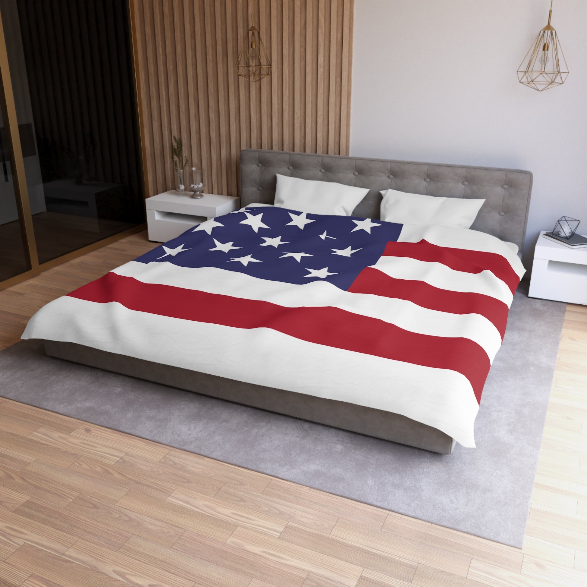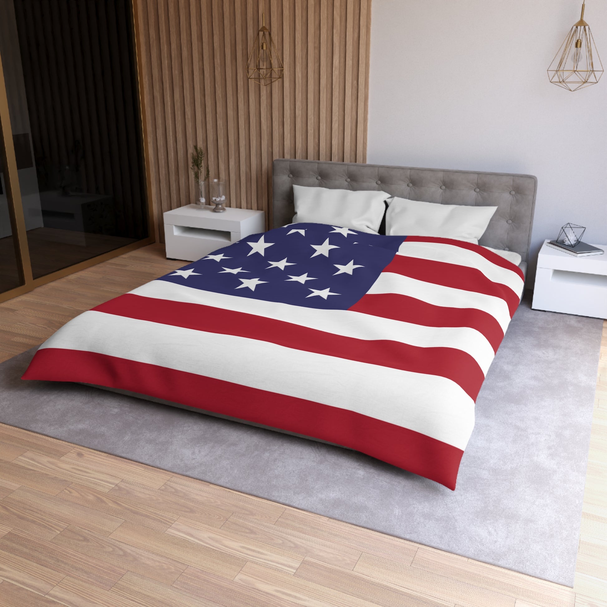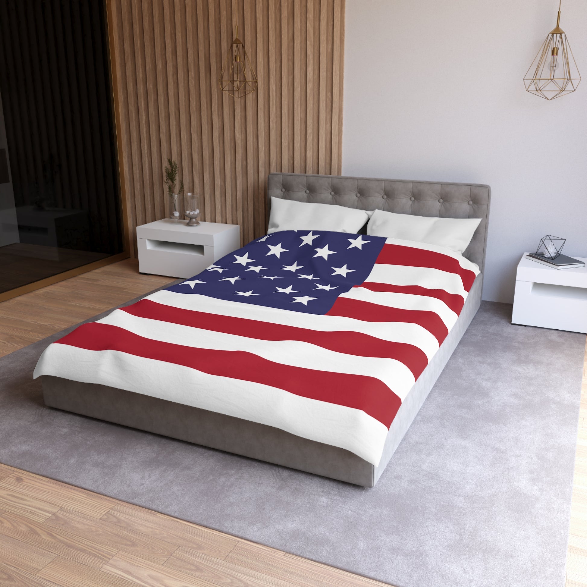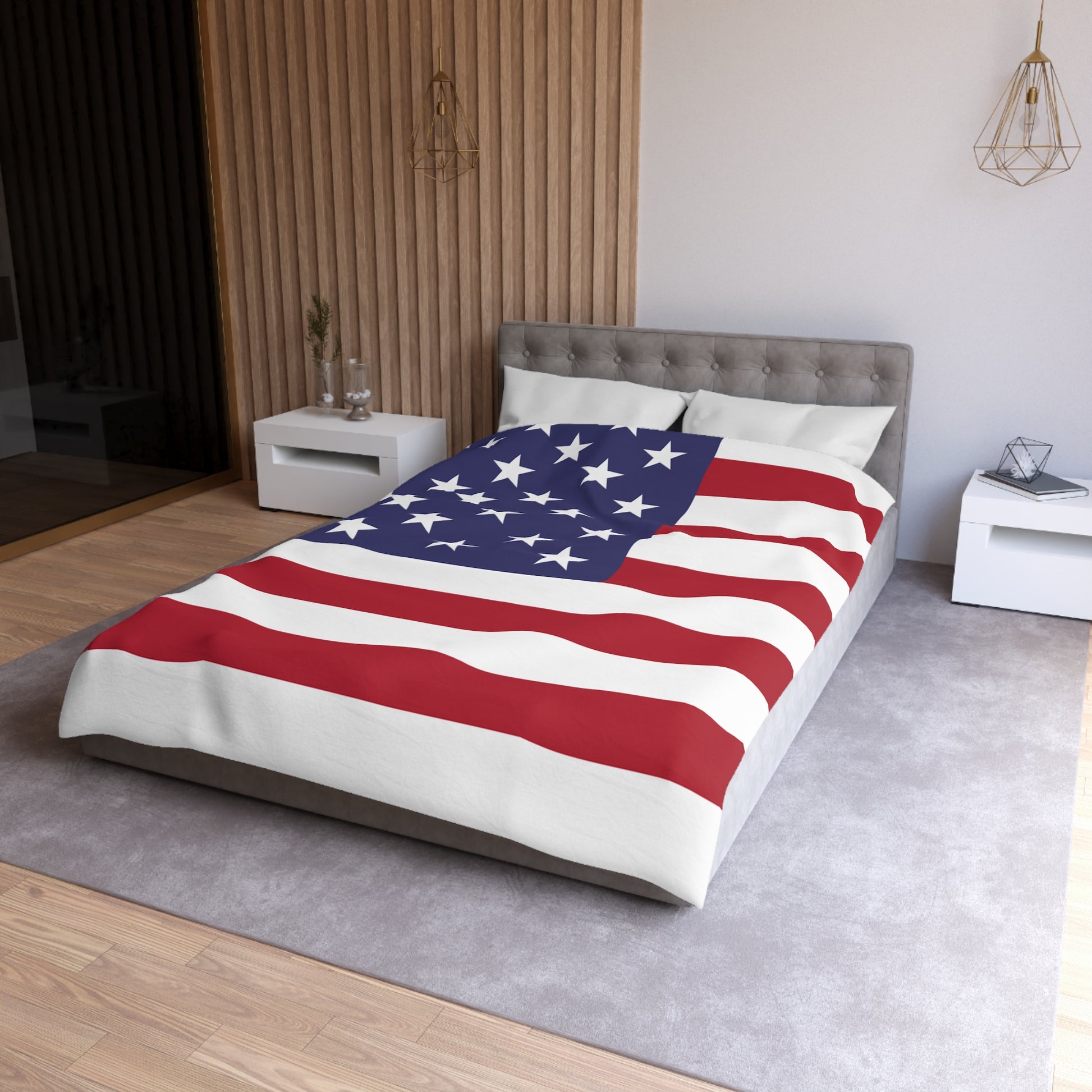 Patriotic Microfiber Duvet Cover - American Flag Design for Home Decor