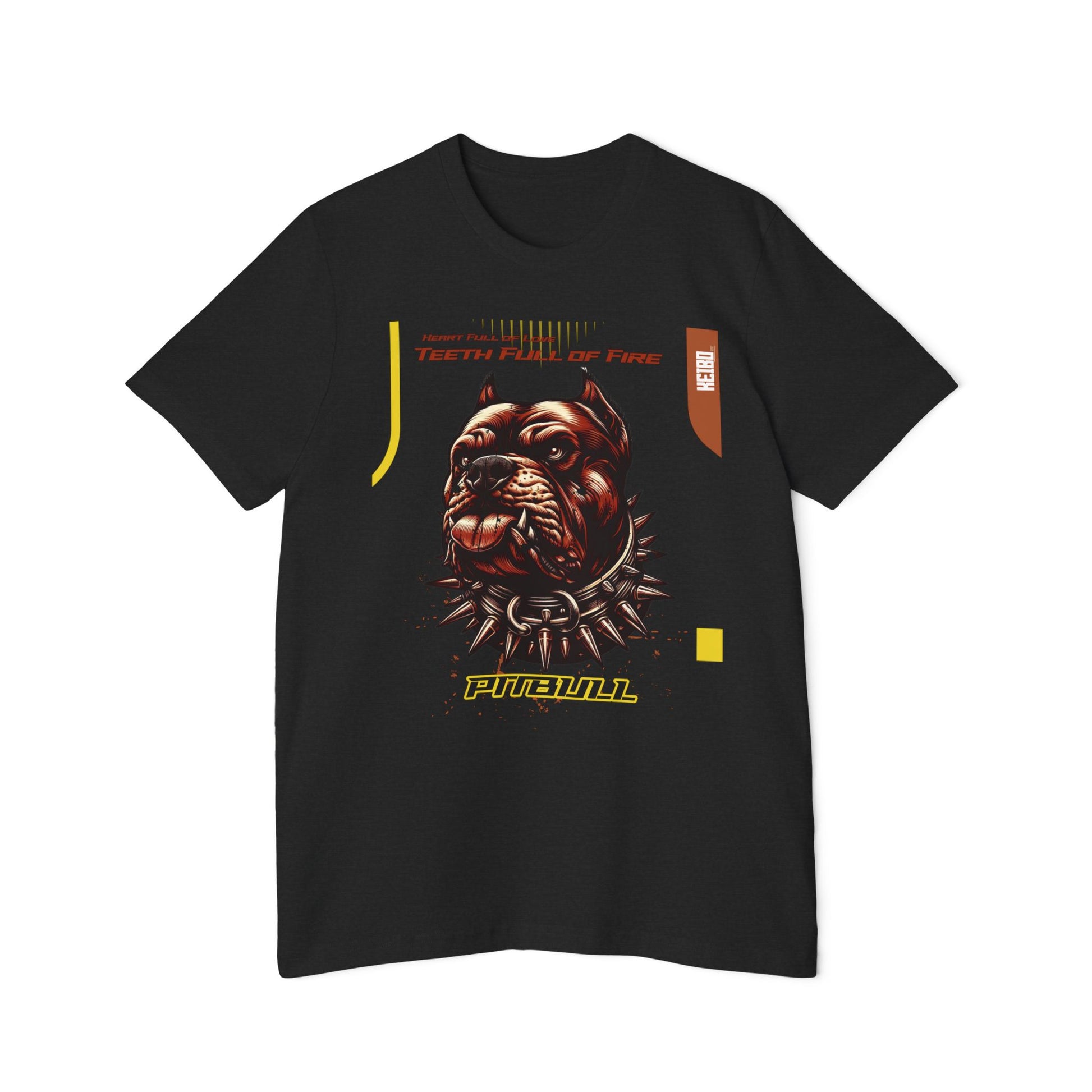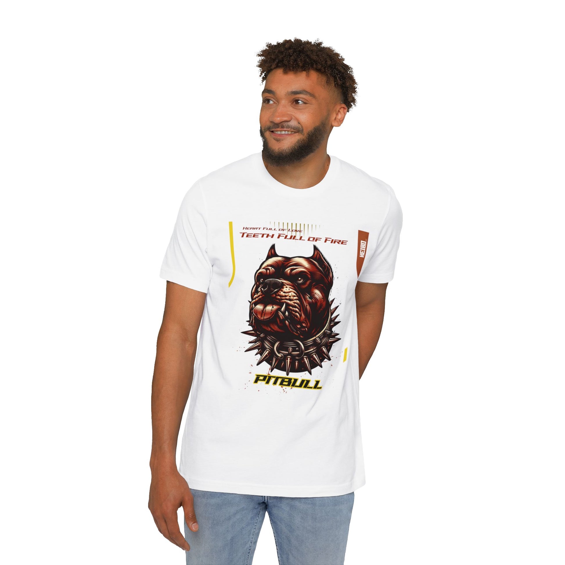 Show your love for Pitbulls with this Pitbull Lover Men's Graphic T-Shirt USA-Made featuring a design of fiery teeth.