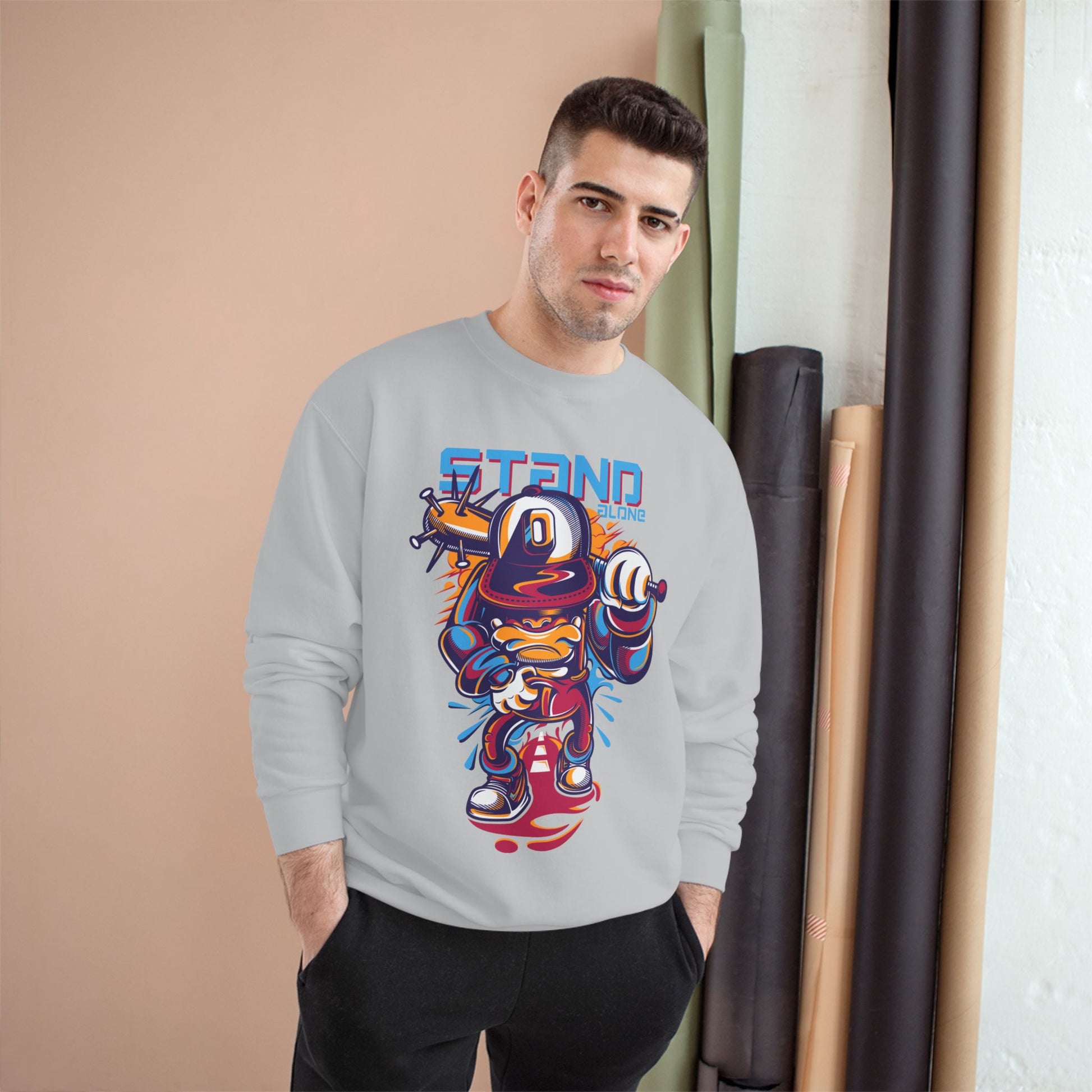 Stand Alone Sweatshirt with a retro gamer style, perfect for cozying up in and showcasing your love for classic gaming. This sweatshirt is designed for gamers and nostalgic individuals who appreciate vintage video game aesthetics. Ideal for casual wear, lounging, or attending gaming conventions and events.