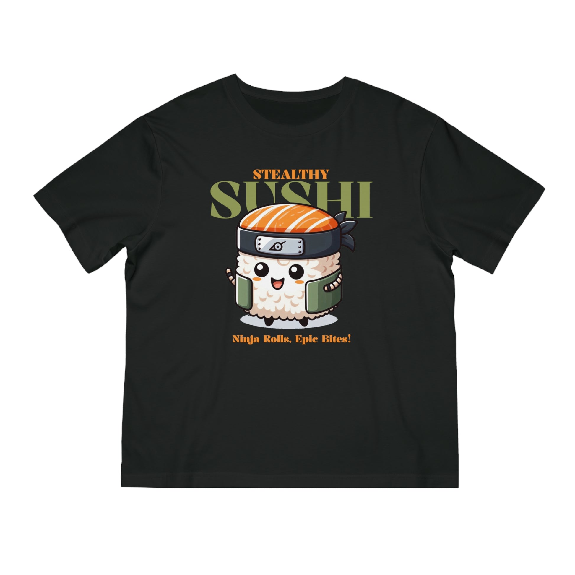This bold graphic tee combines epic bites with stealthy style, perfect for sushi lovers and streetwear enthusiasts.
